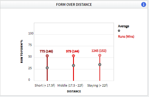 Nigel Twiston-Davies saddled 11 winners in the month of January, including his Triumph Hurdle hope Torpillo who maintained his unbeaten record when winning at Sandown early in the month. As the graph below illustrates, Twiston-Davies has an almost identical run to form/wins ratio across all of the distances he runs his horses.