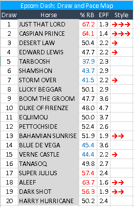 The “fastest 5f in the world” at Epsom is going to take a bit more getting than usual in Saturday’s Investec-sponsored ‘Dash’ Handicap on account of soft ground. But pace, pace and a bit more pace is still going to be at a premium.
