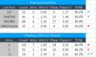 There are many other factors to consider, of course, and some of the more meaningful ones from the last 10 years are as follows. As usual, high figures in the place impact value and % of rivals beaten should be viewed favourably.